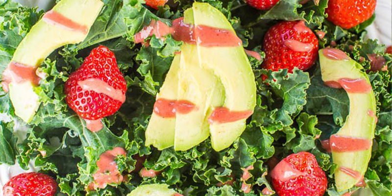 - SALAD - Massage Kale with olive oil by hand. Add all ingredients (kale, avocado, strawberries).